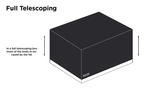The telescoping rigid box is characterized by how the lid and base interact with one another. The lid encases the box itself and is a separate piece from the base, an example of this is commonly seen in chocolate boxes. Sometimes the seal between the lid and the box tightly spaced to give a vacuum effect commonly associated with luxury packaging and custom packaging. The most famous example of this is the iPhone box.